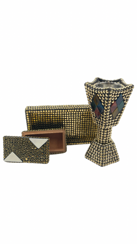 تحتوي المبخرة على صندوق بخور، صينية تحمل نفس الاستايل ، مبخرة بحجم كبير.
