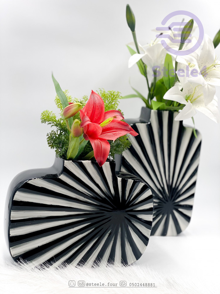 مزهريه بتصميم معاصر ومثالي لعرض النباتات الطويله تتميز بدمج اللون الابيض والاسود لاضفاء مزيد من الجاذبيه والرقي تعد اختيار رائع لديكورات المنزل
