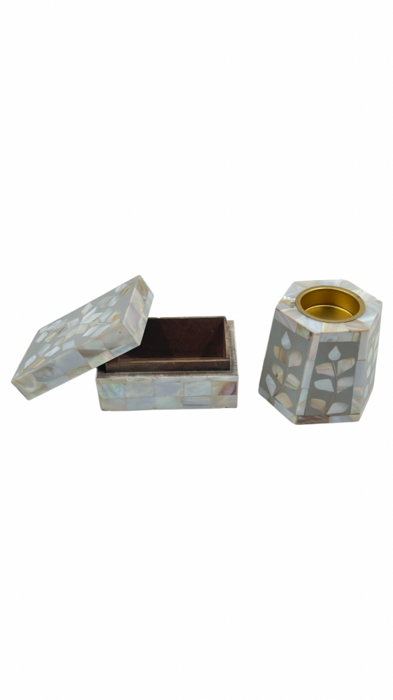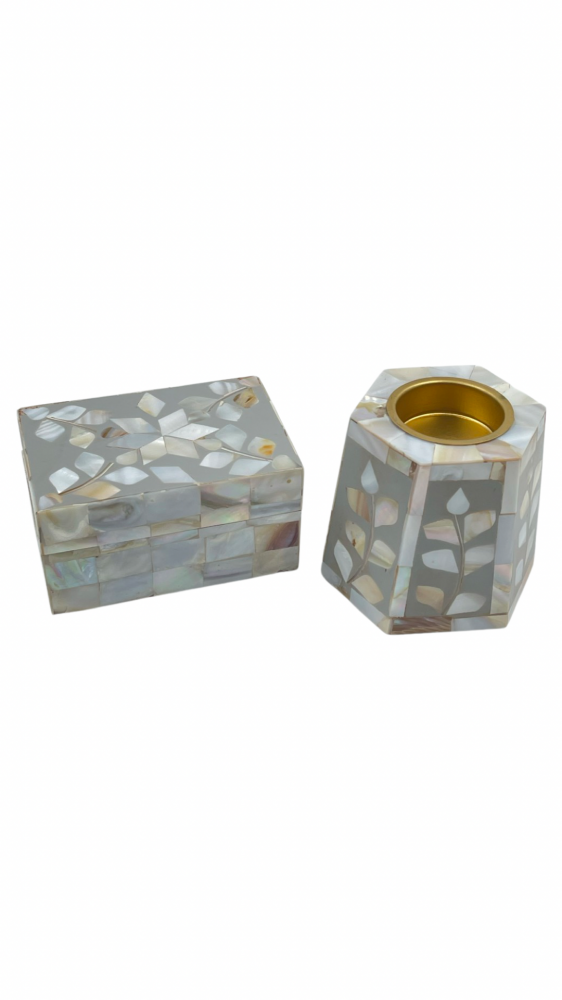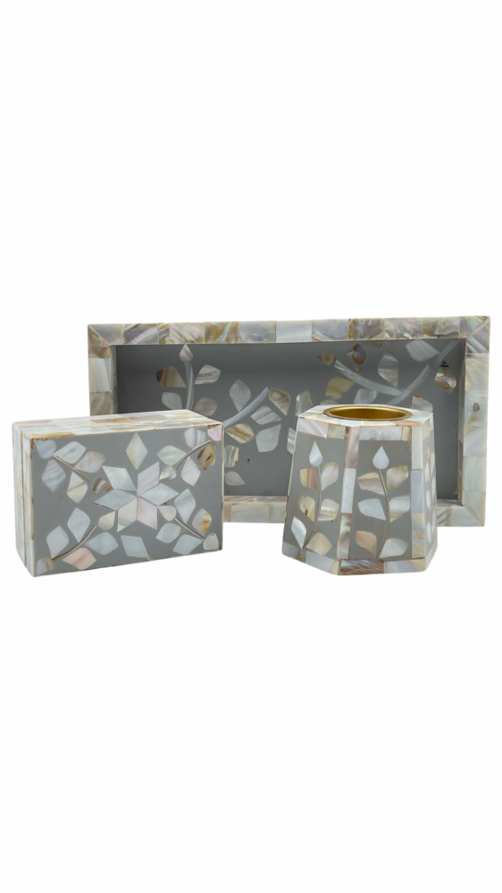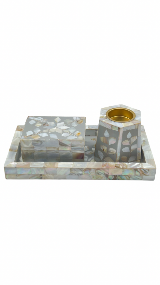 طقم طوفرية مع مبخرة وصندوق صدف لون رصاصي
