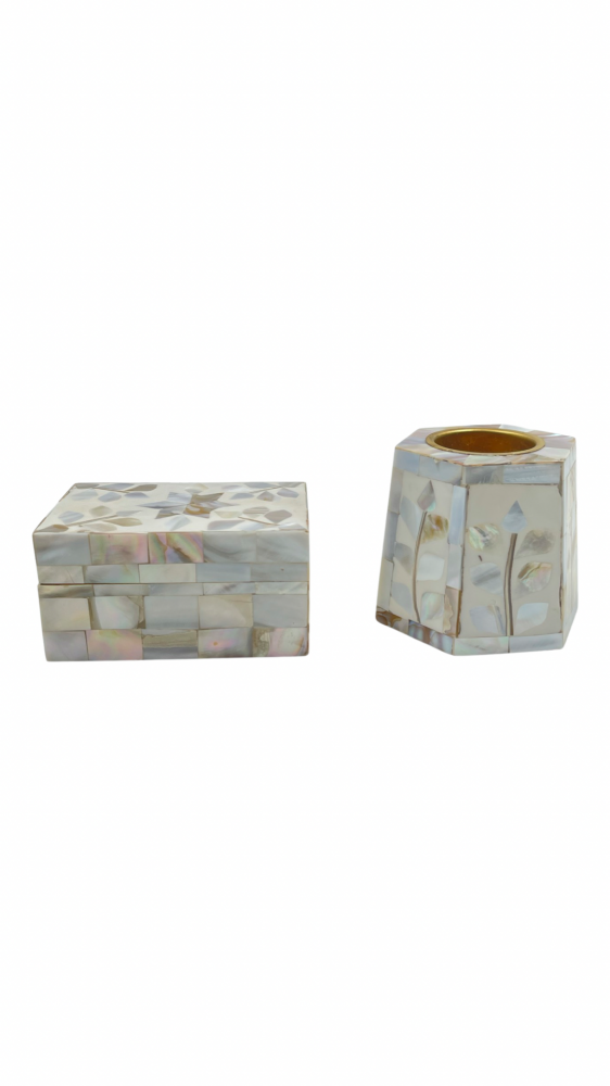 طقم طوفرية مع مبخرة وصندوق صدف لون ابيض