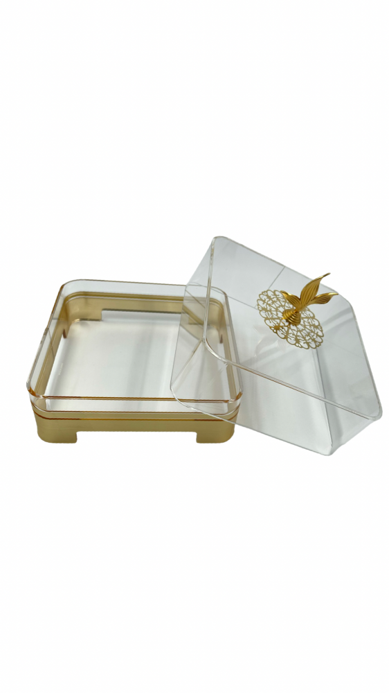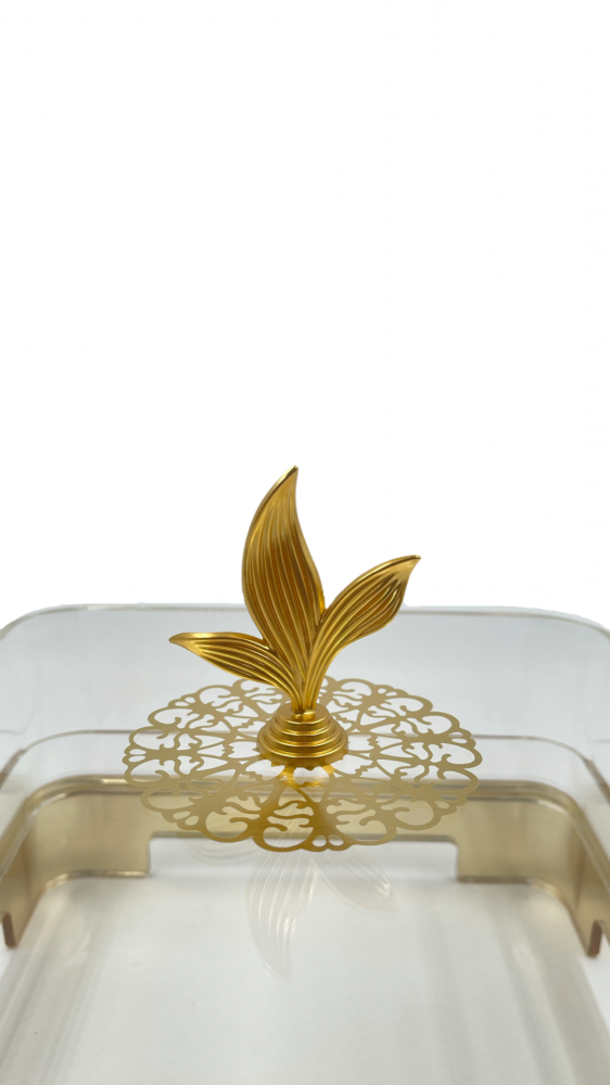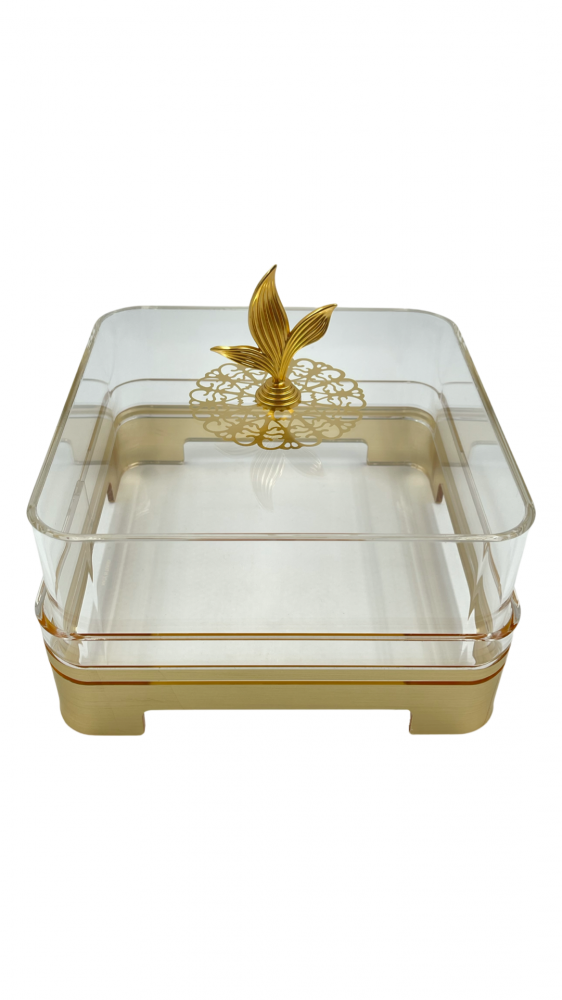 زيني ضيافتك وسفرتك المفضلة بهذه الصينية الرائعة بلمسات ذهبية انيقة مع قواعد لرفعه قليلا بمقبض ذهبي مميز. مصممة باستايل مربع عصري، مع غطاء مميزة بنقوش ذهبية ، وبقاعدة متباينة تعزز من شكلها، مصنوعة من الأكريليك المتين، وتعكس رقي و روعة ذائقتك و اختياراتك.