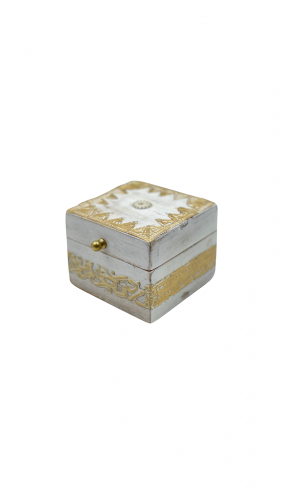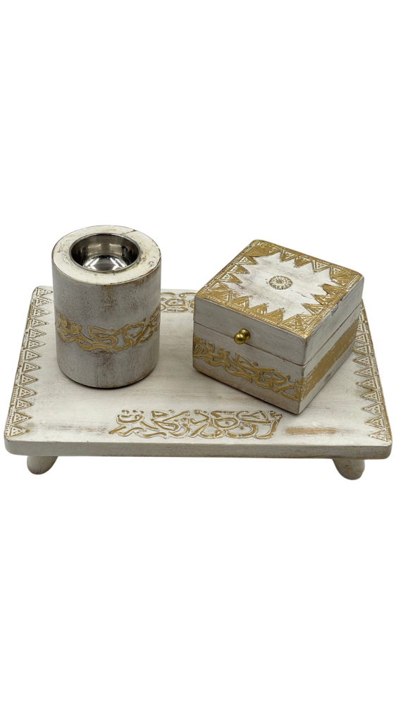 طقم خشبي فاخر من مبخره وصينيه و صندوق بزخرفة جميلة لون ابيض