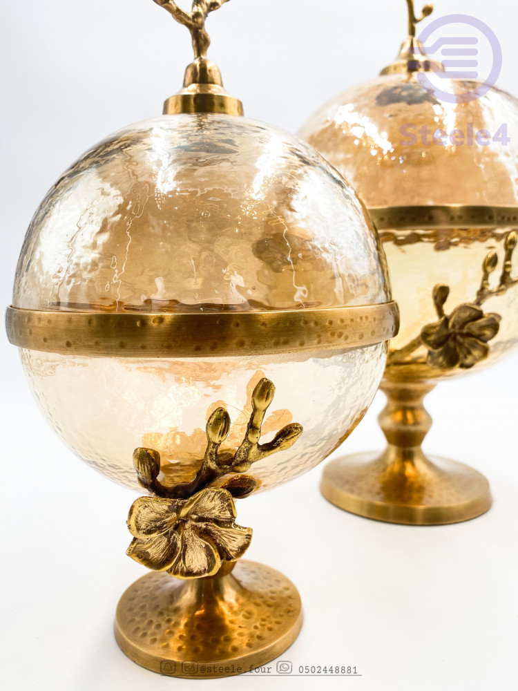 تحفه كرويه من الزجاج ومزينه بأغصان وزهور نحاسيه