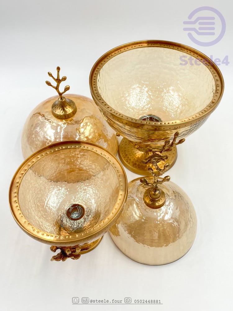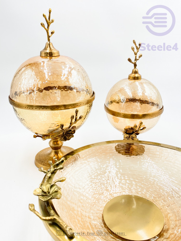 صينية الأكريليك مقسمة بلمسات ذهبية مع غطاء ذهبي منقوش واستايل عصري