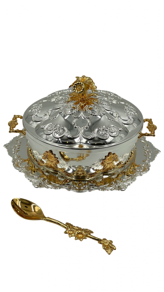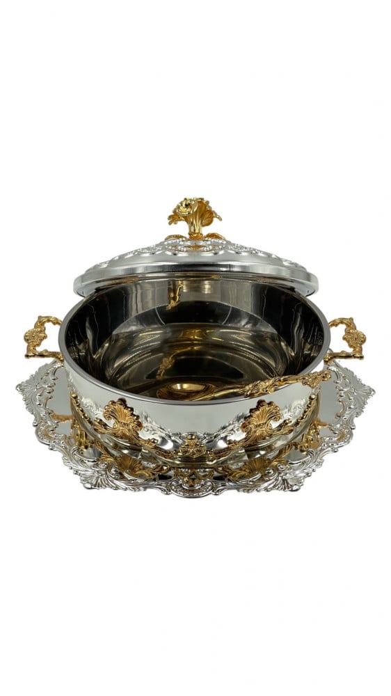 حافظة طعام استيل فضي و زخرفة ذهبية مميزة بتصميم جديد بمقاسات مختلفة