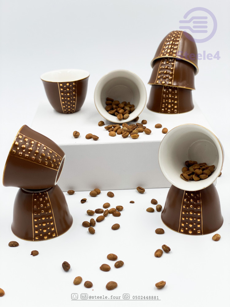 طقم فناجيل 12 حبه مصممه لشرب القهوه العربيه بشكل جميل ونقوش ذهبيه براقه