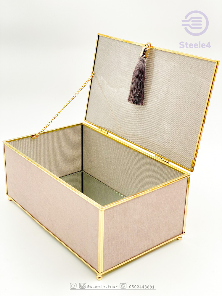 صندوق زجاجي انيق مصنوع من الزجاج والوبر ليضفي له ملمس جذاب بتعليقة اغلاق مميزه والوان جذابه