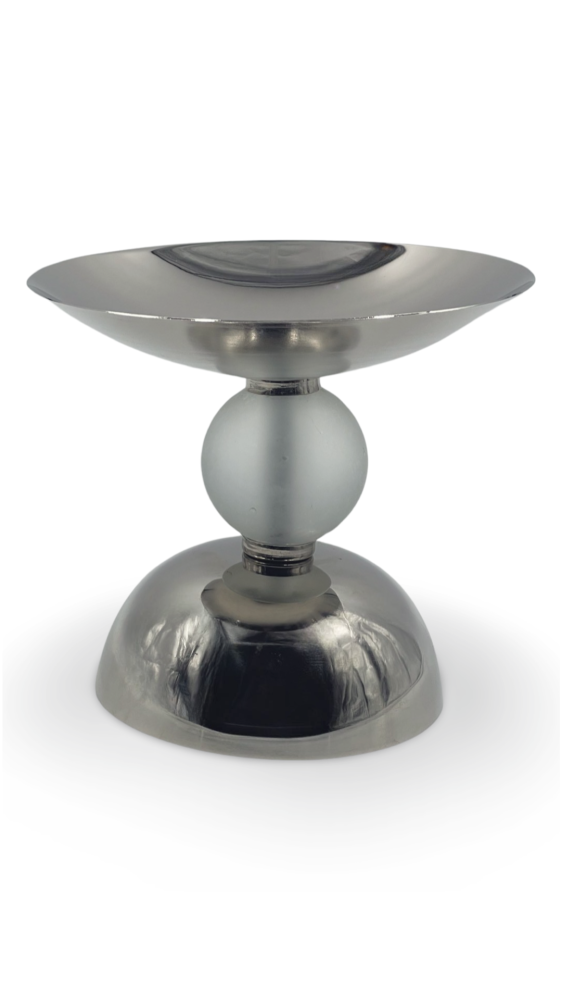 وعاء معدني صغير بقاعدة بلوريه مميزه