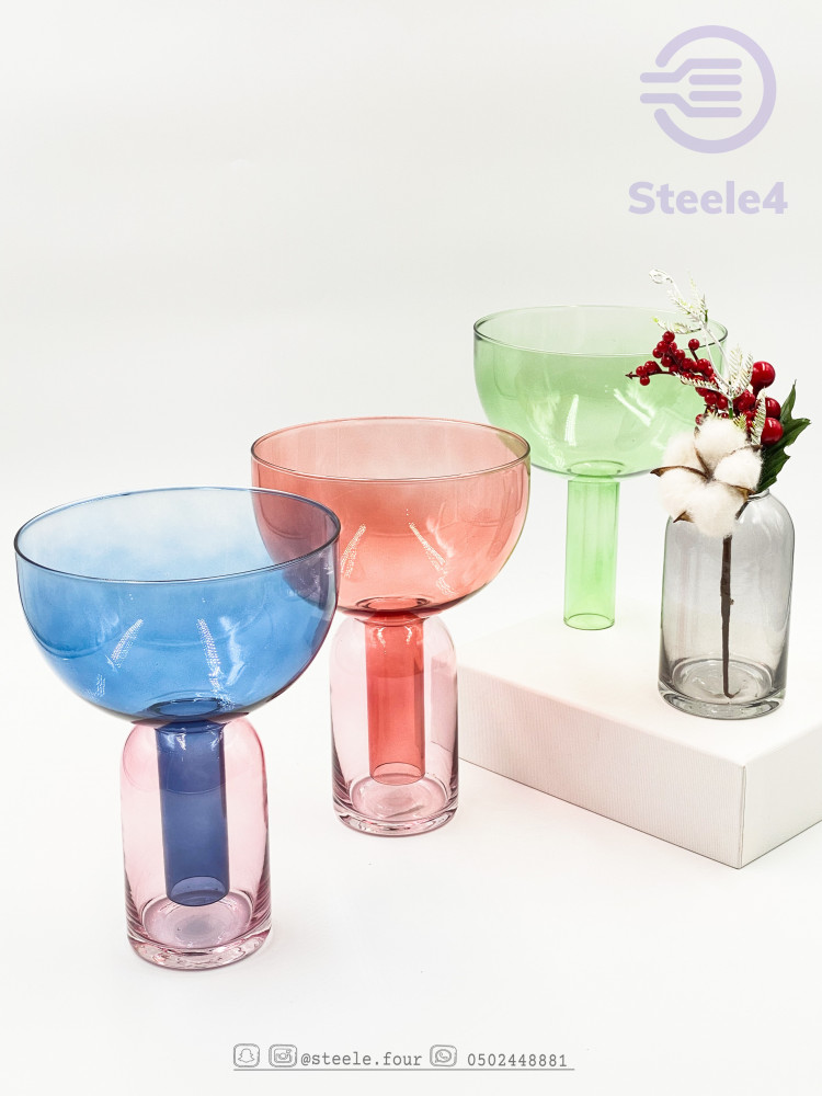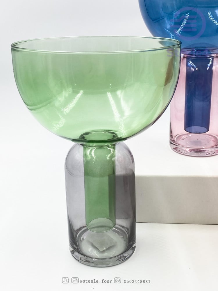 وعاء زجاجي من قطعتين بتصميم القمع المميز وقاعده متحركه تمنحه شكلاً غايه في الرقي ، ذو الوان عصريه خلابه .. المقاس: 20*15