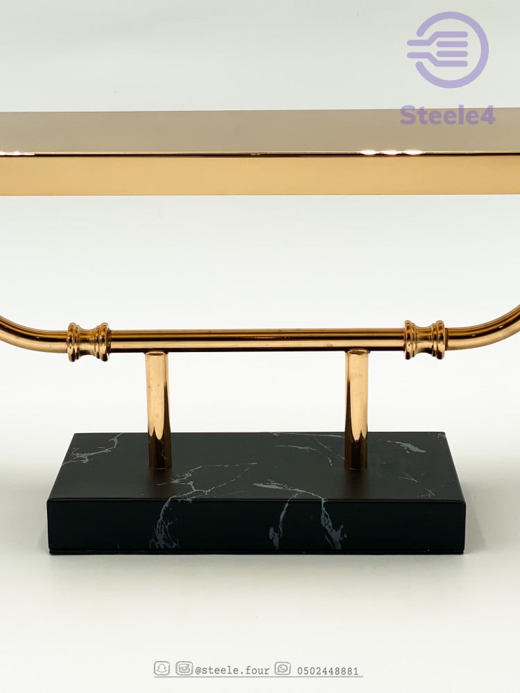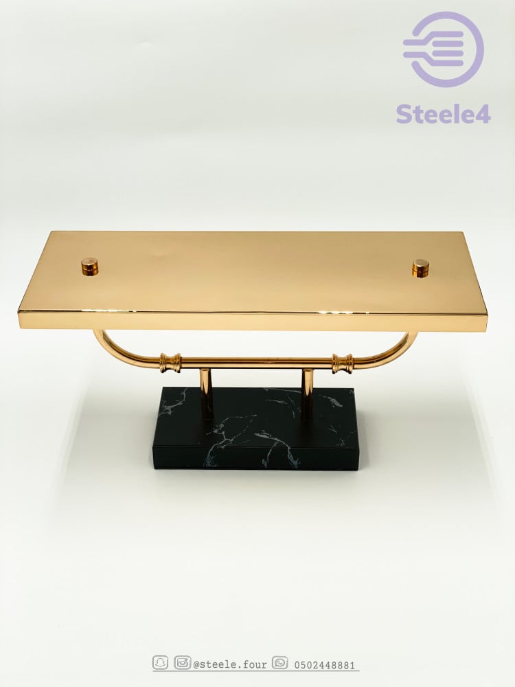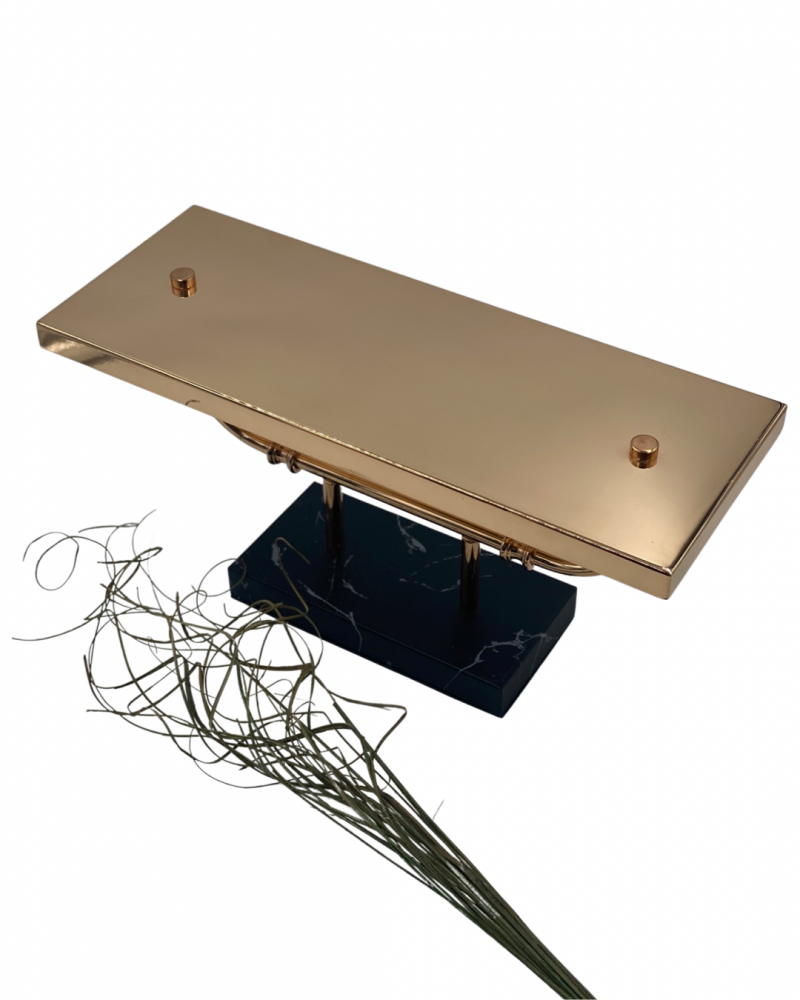 صينية ديكور مميزه ، بتصميم عصري وفريد مصنوعه من الاستيل المطلي بالذهبي وقاعده رخاميه تزيد من جاذبيتها وتميزها ، متعددة الاستخدامات كديكور او تقديم ..