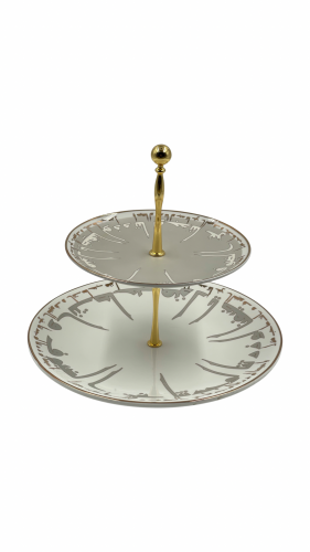ستاند طبقتين دائري مزخرف عبارات ترحيبية بالخط العربي لون رصاصي
