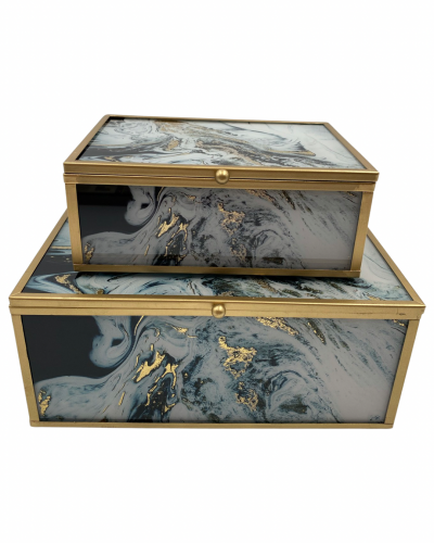 صندوق مصنوع من الزجاج وحواف معدنيه ذهبيه(اسود+ابيض)
