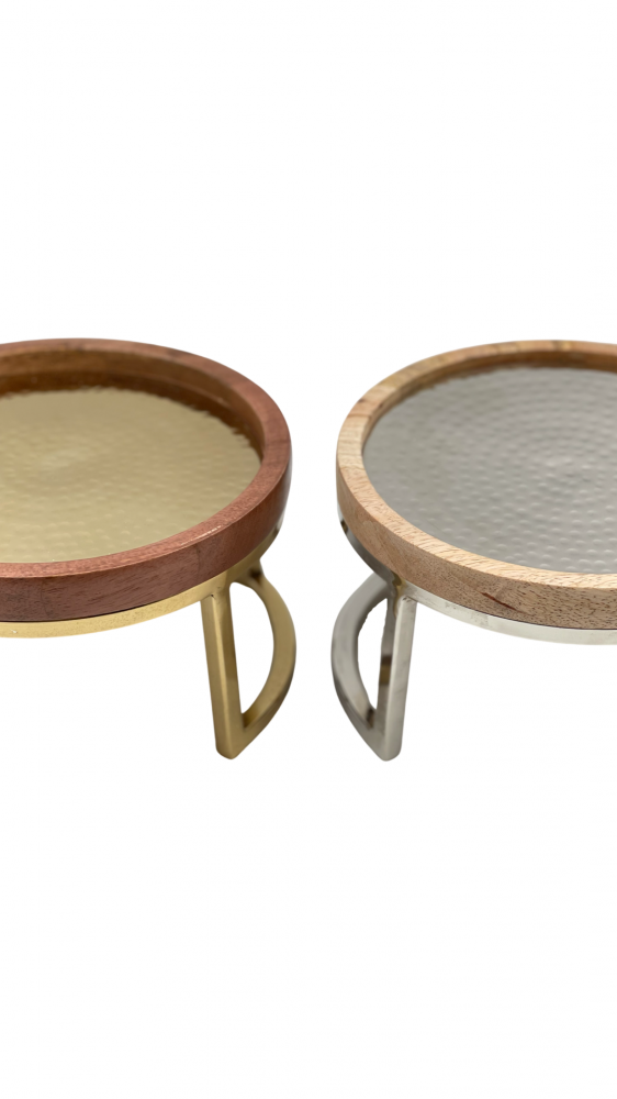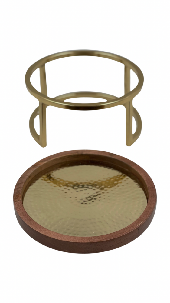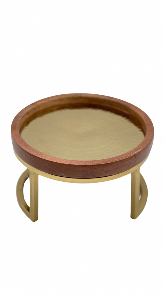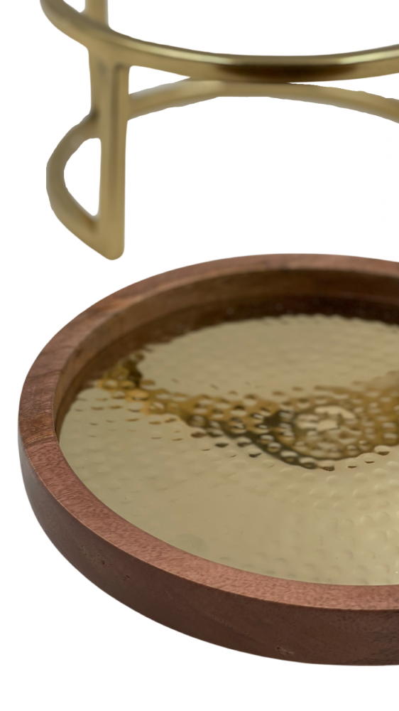 استاند جميل يجمع بين الخشب الطبيعي والاستيل الذهبي اللامع الذي يضفي شكلا متجانس ورائع ليظهر سفرتك باجمل مظهر ويتميز بجودة عالية وصناعة هندية